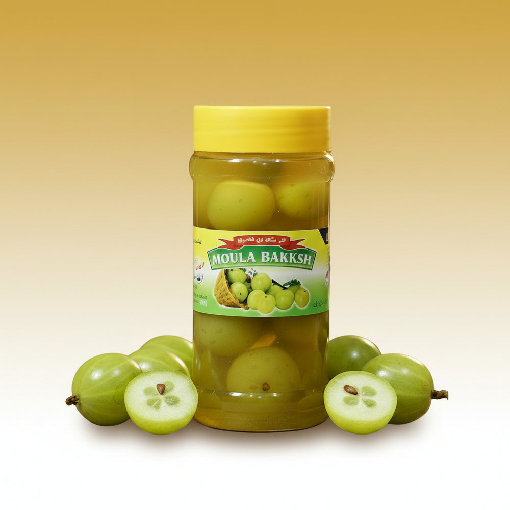 MBM Peechlee Garden Aamla Murabba is a highly valued, classic sweet preserve (Murabba) from South Asian tradition. It is made from fresh Indian Gooseberries (آملہ), which are gently cooked and preserved in a heavy sugar or jaggery syrup. While raw Aamla is tart and slightly astringent, the process of making Murabba transforms it into a tender, sweet, and succulent (نرم، میٹھا اور رس دار) fruit. It is cherished not just as a dessert or sweet condiment but primarily for its exceptional medicinal and nutritional properties (طبی اور غذائی خصوصیات).